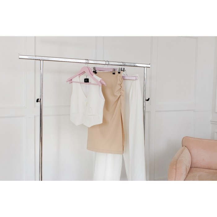Вешалка – это компактное приспособление, которое позволит вам разместить в гардеробе классические штаны из лёгких или плотных материалов, блузки, рубашки, кофты и другие вещи. Изделие практичной формы занимает мало места, что позволяет экономить пространство в шкафу. Эргономичная форма поможет надёжно зафиксировать одежду и предотвратить её падение.