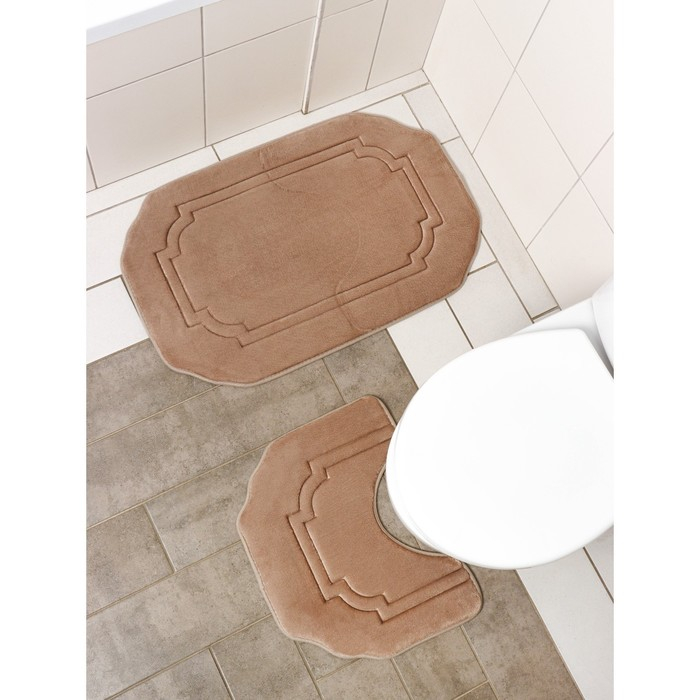 Коврики для ванной и туалета Доляна «Гранж», 2 шт: 40×50 см, 50×80 см, цвет бежевый