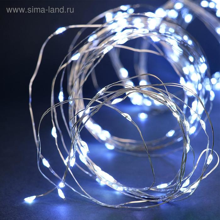 Гирлянда «Мишура» 1.2 м роса с насадками «Бусины», IP20, серебристая нить, 20 LED, батарейки CR2032х2 (в комплекте), свечение тёплое белое