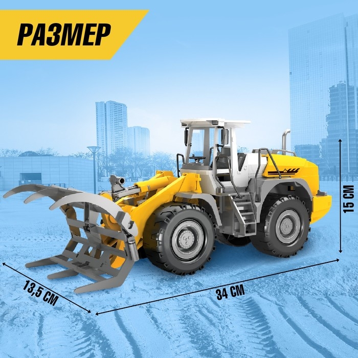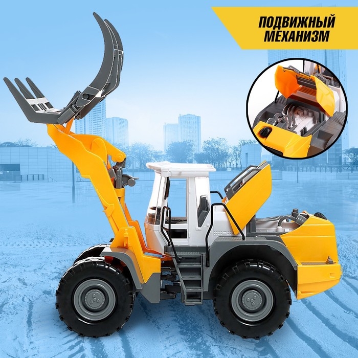 С инерционным трактором ребёнок представит себя профессиональным водителем спецтранспорта. У техники подвижный ковш-вилы — с его помощью можно захватывать и перевозить небольшие предметы.