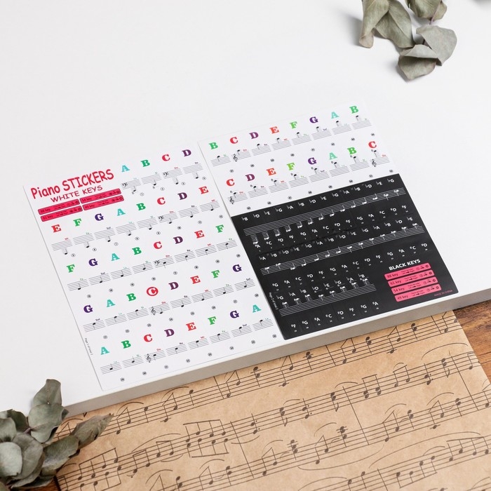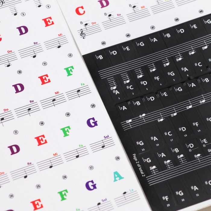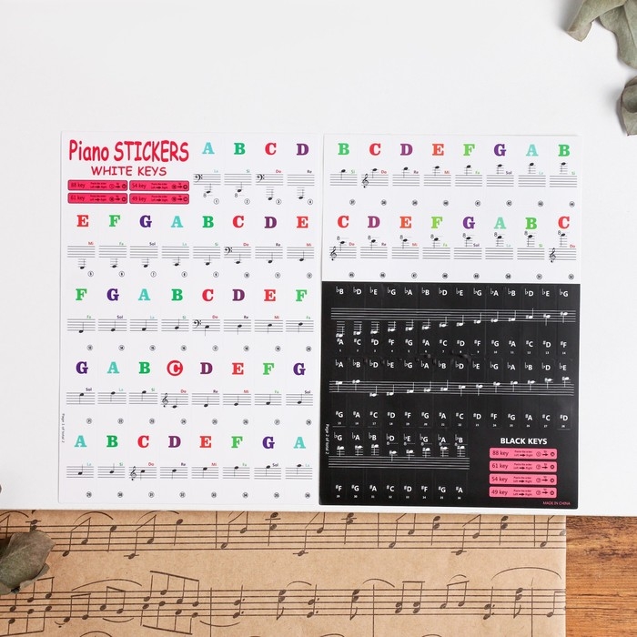 Цветные наклейки на клавиши пианино, один комплект, 3 листа