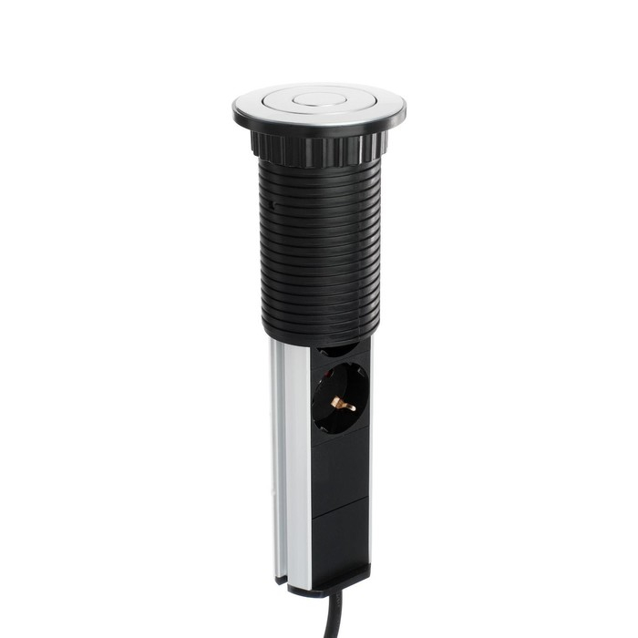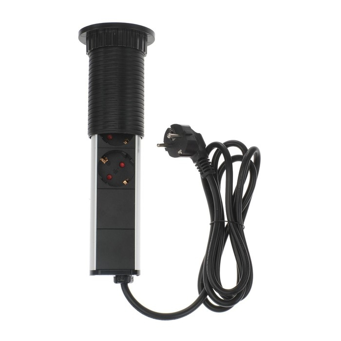 Блок розеточный в стол, сдвижная крышка, 10А, 3 розетки, провод 1.8 м, черный