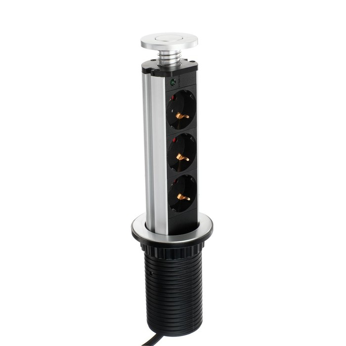 Розетка выдвижная, Luazon, 16 А, трёхместная, в стол, цвет серебро