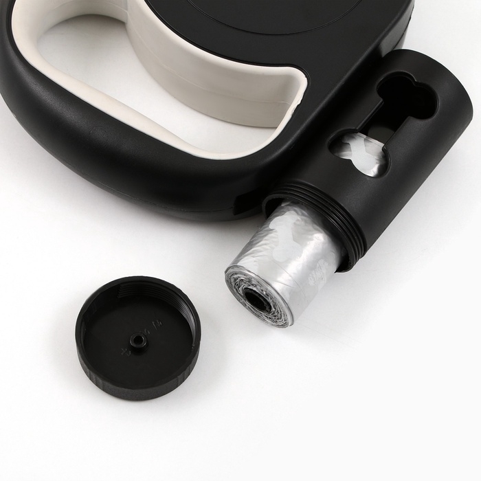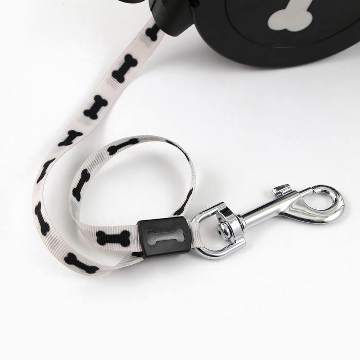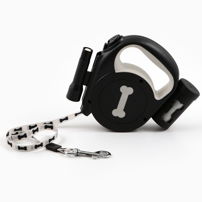 Рулетка «Косточка» с фонарем и отсеком для пакетов, 4,5 м, вес животного до 20 кг, черная