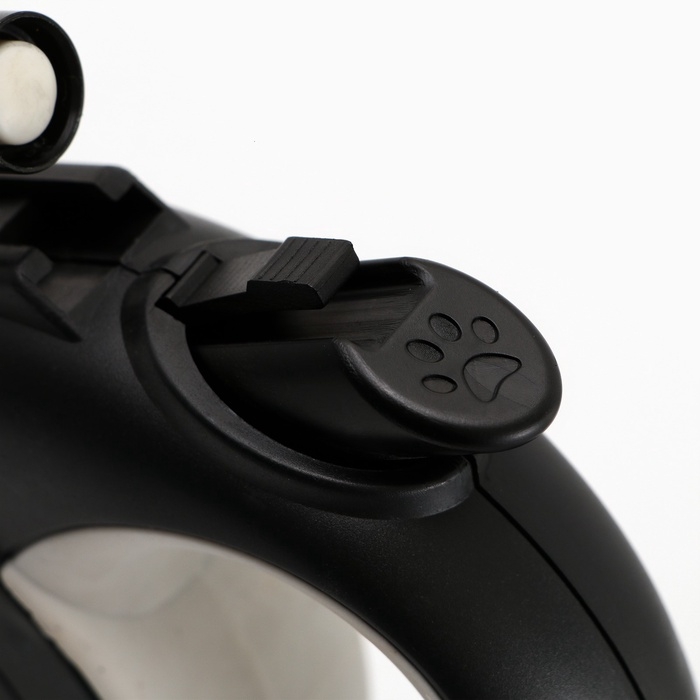 Удобная ручка и надёжный фиксатор обеспечивают безопасность и комфорт для питомца и хозяина. Поводок в процессе использования не провисает и не касается земли, таким образом не пачкается и не перетирается.