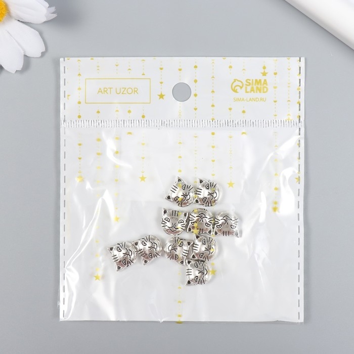 Бусина для творчества металл "Котик" набор 10 шт серебро 1,1х1,1 см