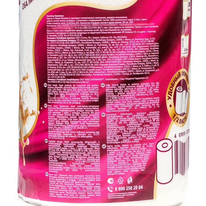 Один рулон заменяет 3 обычных рулона полотенец. Мягкие и очень приятные на ощупь, обладают высокой влаго впитывающей способностью и прочностью.
