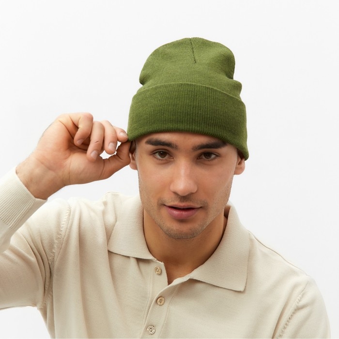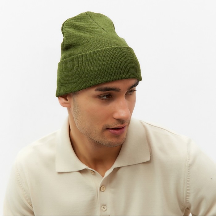 Шапка мужская двухслойная с отворотом, one size, цвет хаки