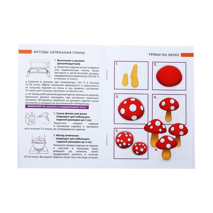 Изделия из глины следует запекать в духовке при температуре 130°С в течение 15-30 минут. Время запекания варьируется в зависимости от толщины изделия и, как правило, составляет 15 минут для толщины заготовки не более 6 мм.