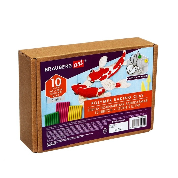 Глина полимерная запекаемая BRAUBERG ART DEBUT предназначена для лепки и моделирования, создания игрушек, украшений, предметов интерьера, сувениров.