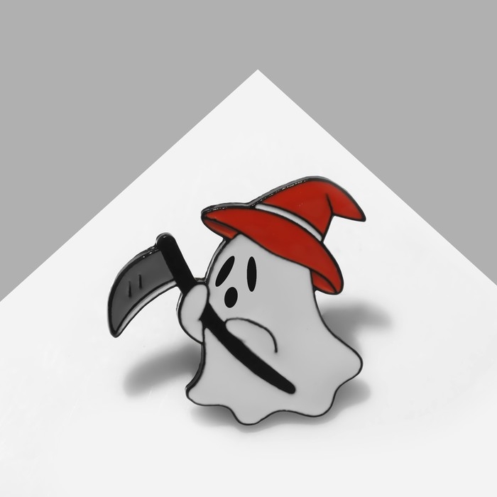 Значок "Привидение" с косой, цвет бело-оранжевый в чёрном металле