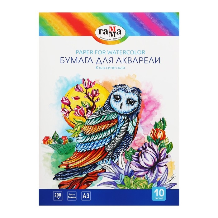 Акварельная бумага ГАММА серии "Классическая" состоящая из 10 листов плотностью 200 г/м2 отлично походит для рисования всеми видами водорастворимых красок, а также фломастерами и карандашами, мелками, ручками.