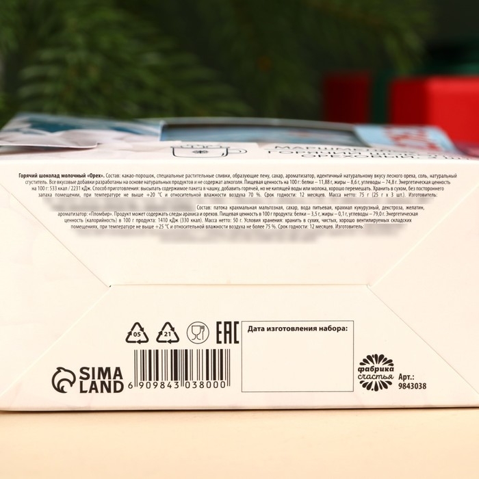 Подарочный набор «Ныряй в счастье»: маршмеллоу, вкус: пломбир, 50 г., горячий шоколад, вкус: орех, 75 г (25 г. х 3 шт).