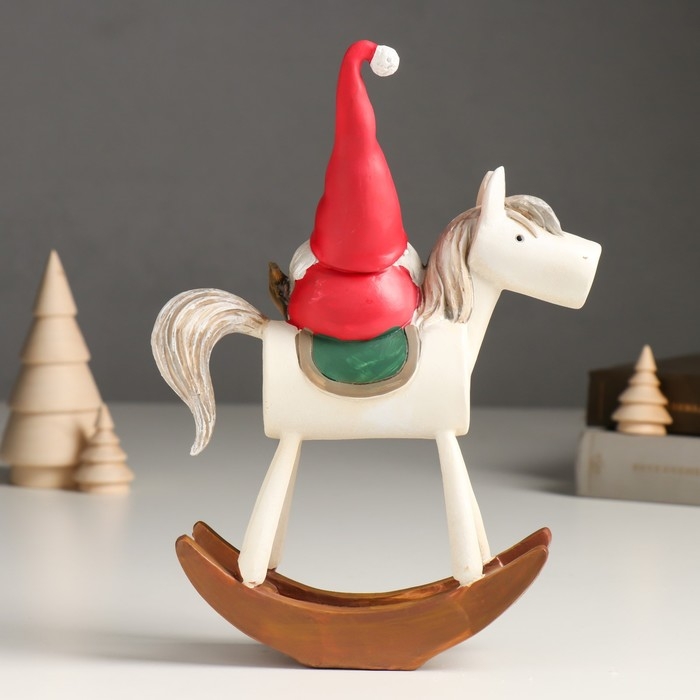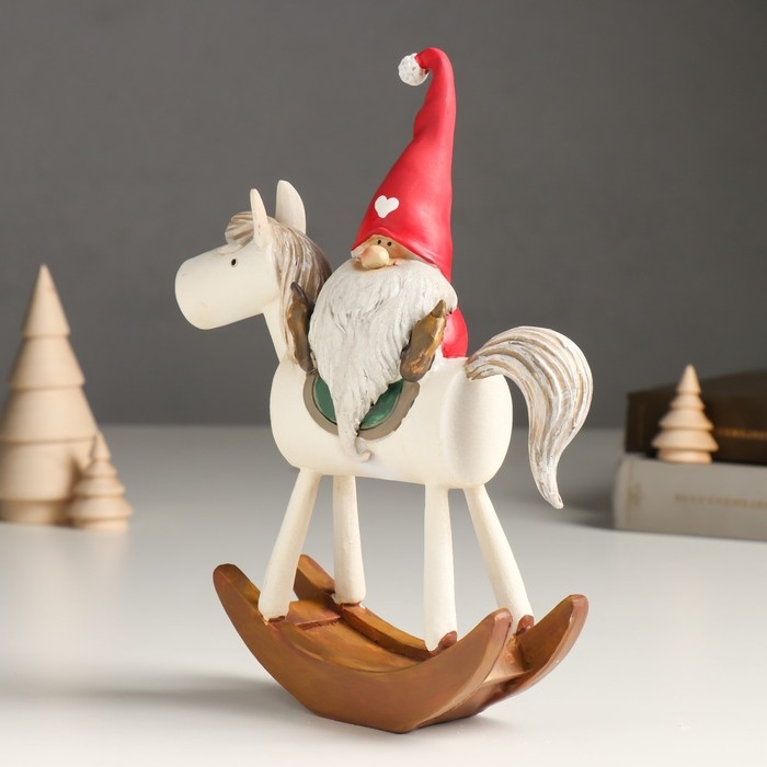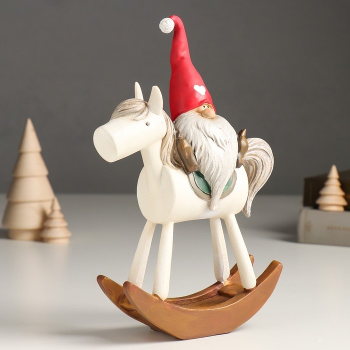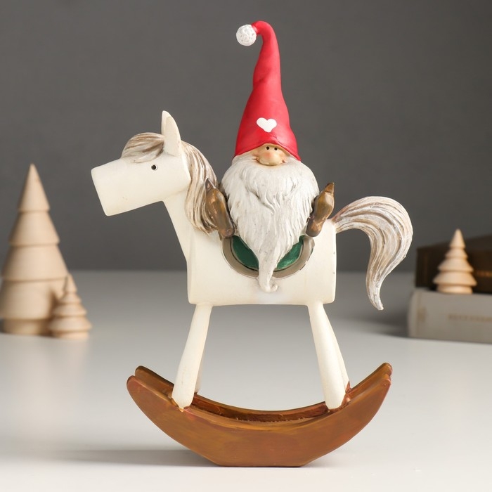 Сувенир полистоун "Дедуля верхом на лошадке-качалке в колпаке с сердцем" 5х17х23 см