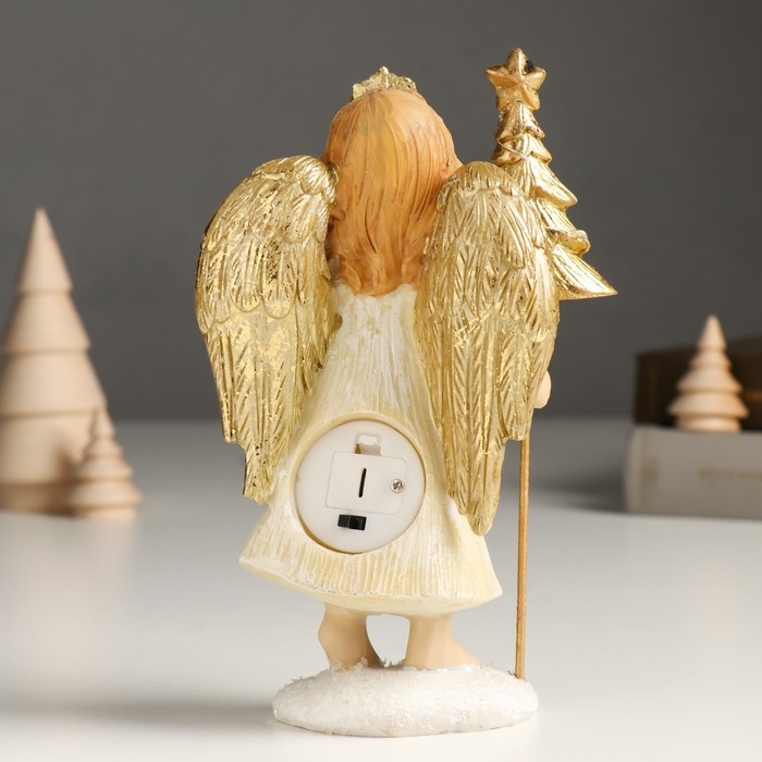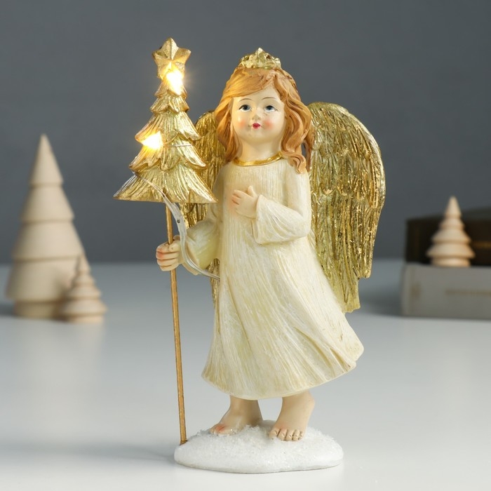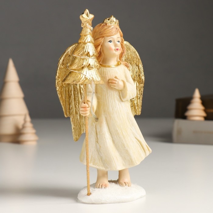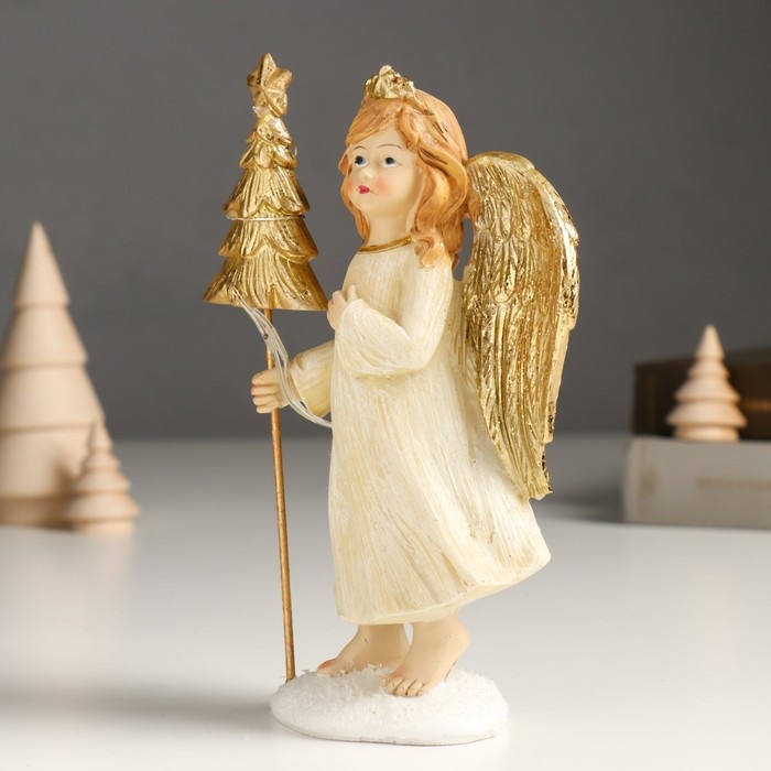 Сувенир полистоун "Девочка-ангел в бежевом платье с ёлочкой" золото 6х9х17 см