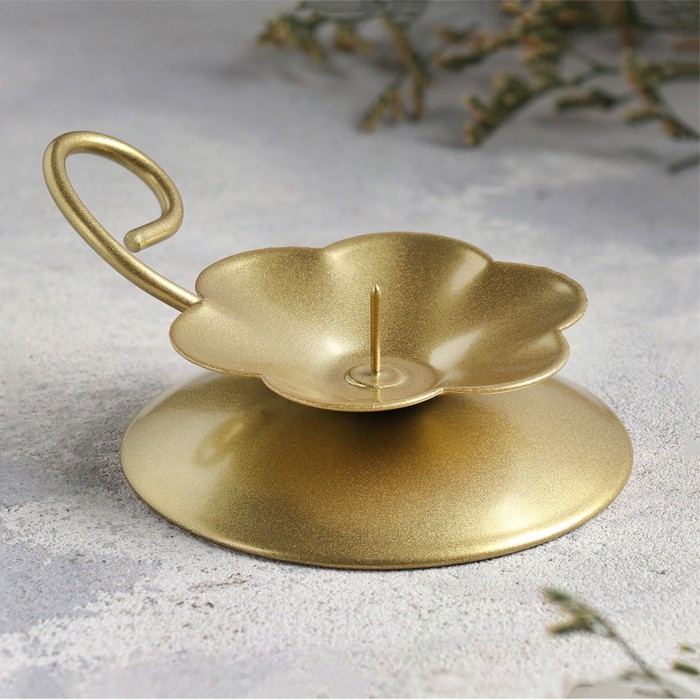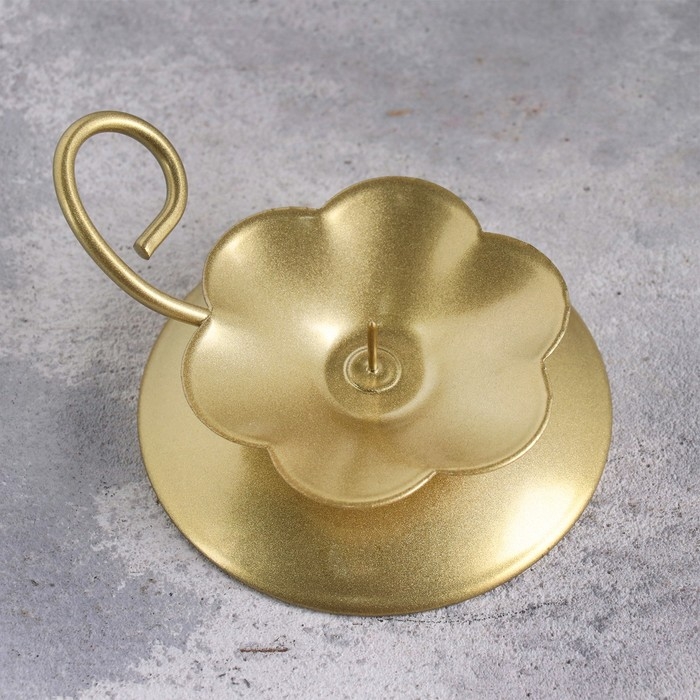 Подсвечник "Цветок Н" металл на одну свечу, 9х3,5 см, золотой
