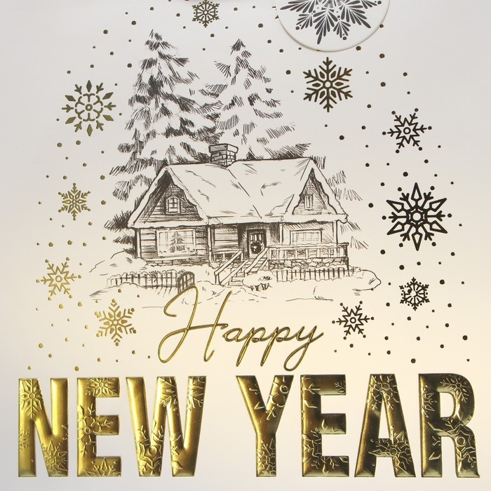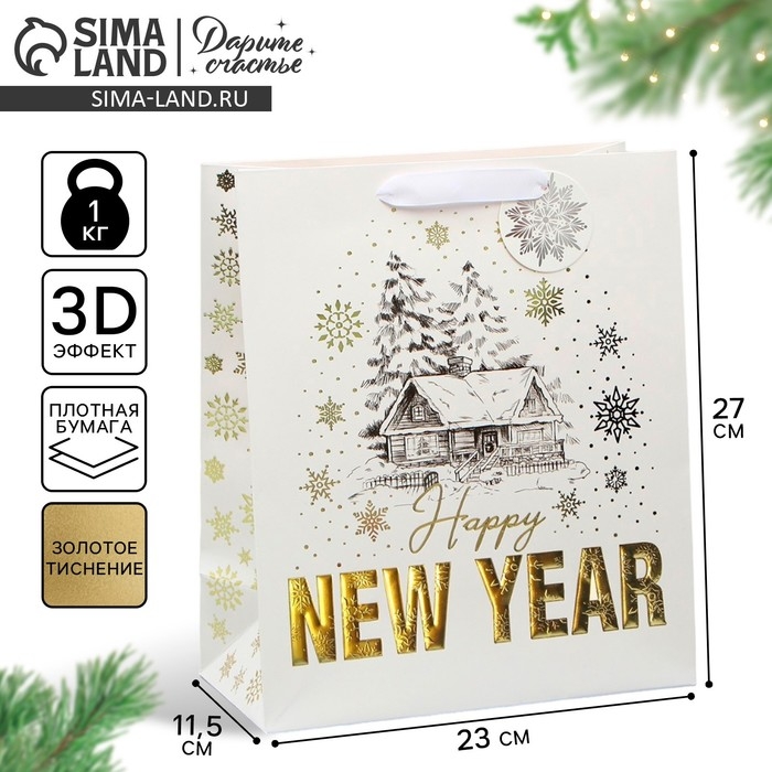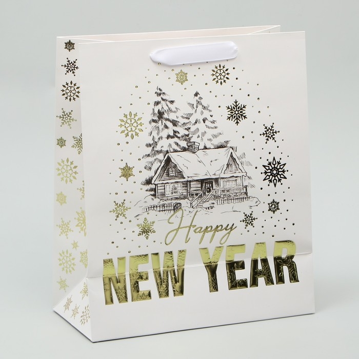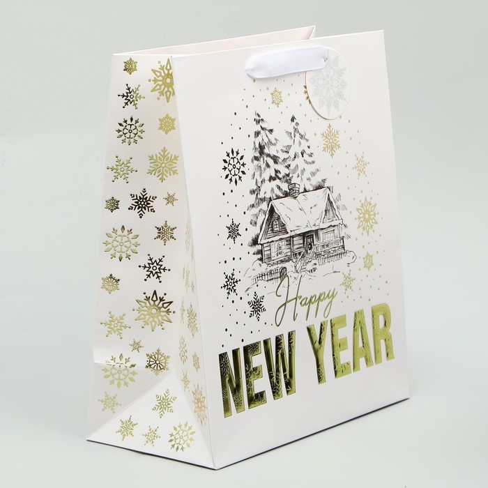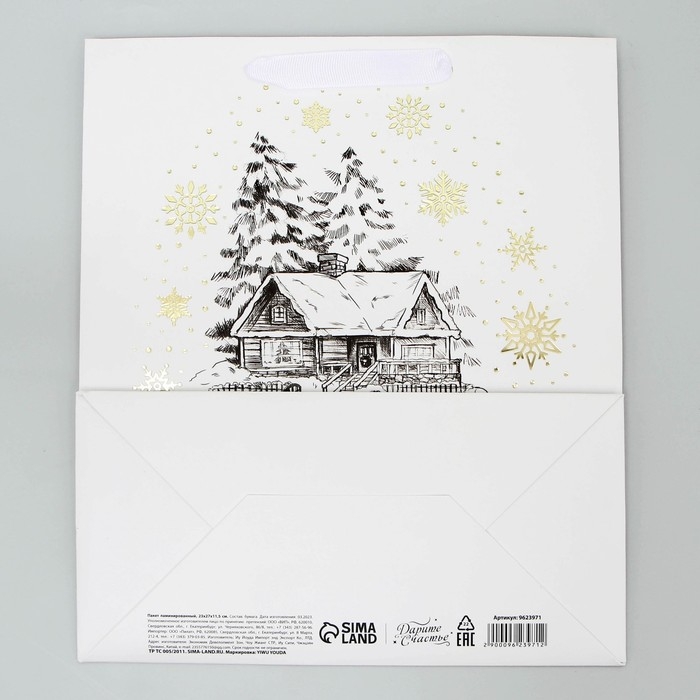 Пакет подарочный новогодний ламинированный вертикальный, конгревное тиснение «Новогодний домик», ML 23 х 27 х 11.5 см, Новый год