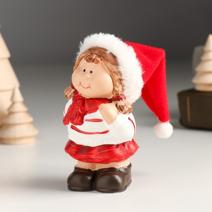 Сувенир керамика "Малышка в красном колпаке и шарфике" 5х4х14,2 см