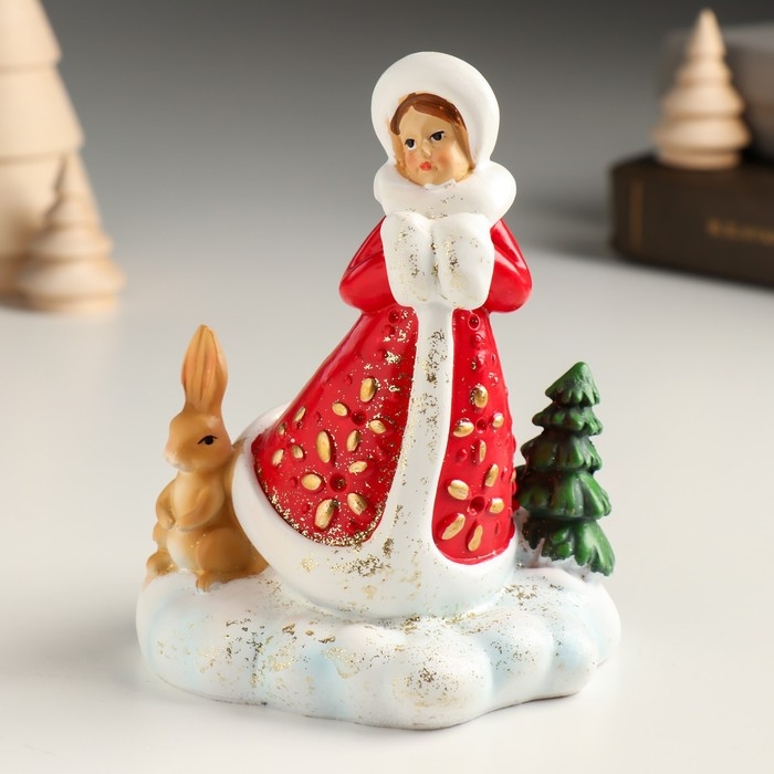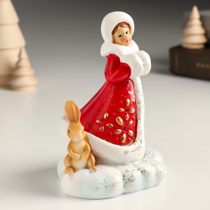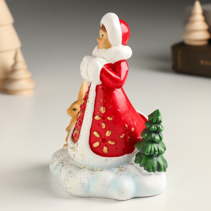 Сувенир полистоун "Снегурочка с зайчиком в лесу" 9,8х8х12,2 см