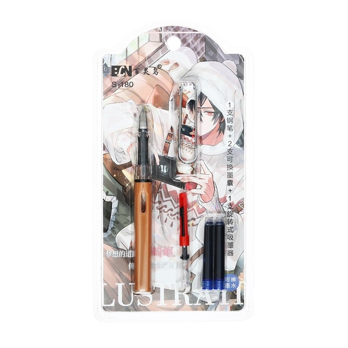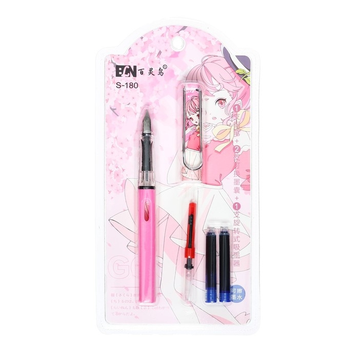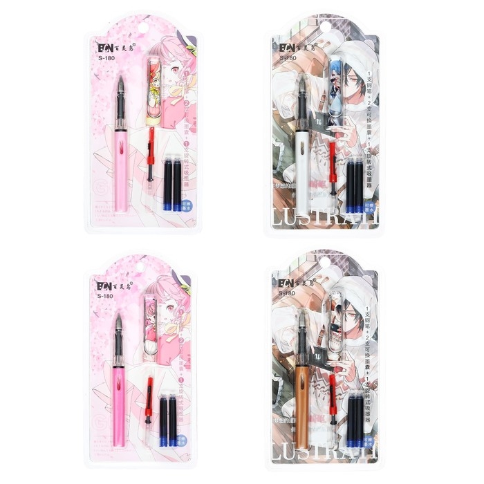Ручка перьевая + 2 картриджа синих + поршень, на блистере, "Аниме", МИКС