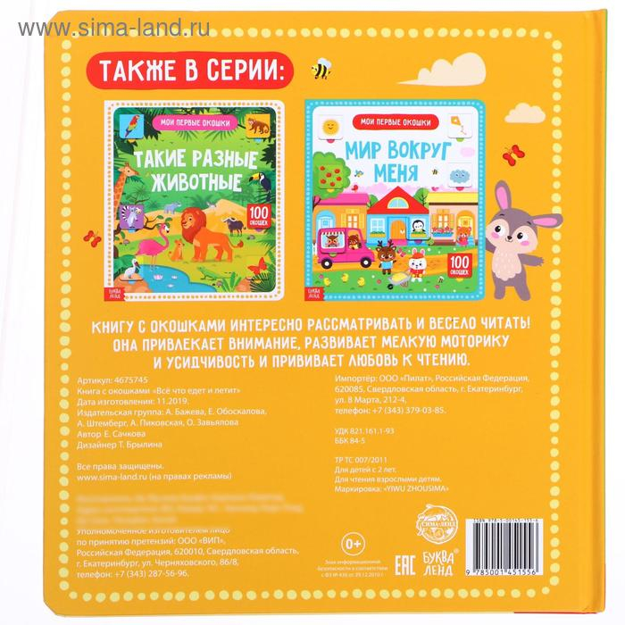 Книга картонная в твердом переплете 100 окошек «Всё, что едет и летит», 12 стр.