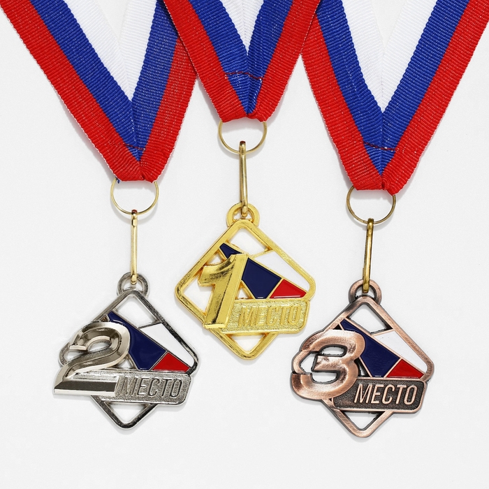 Медаль призовая 013, d= 5 см. 3 место, триколор. Цвет бронза. С лентой
