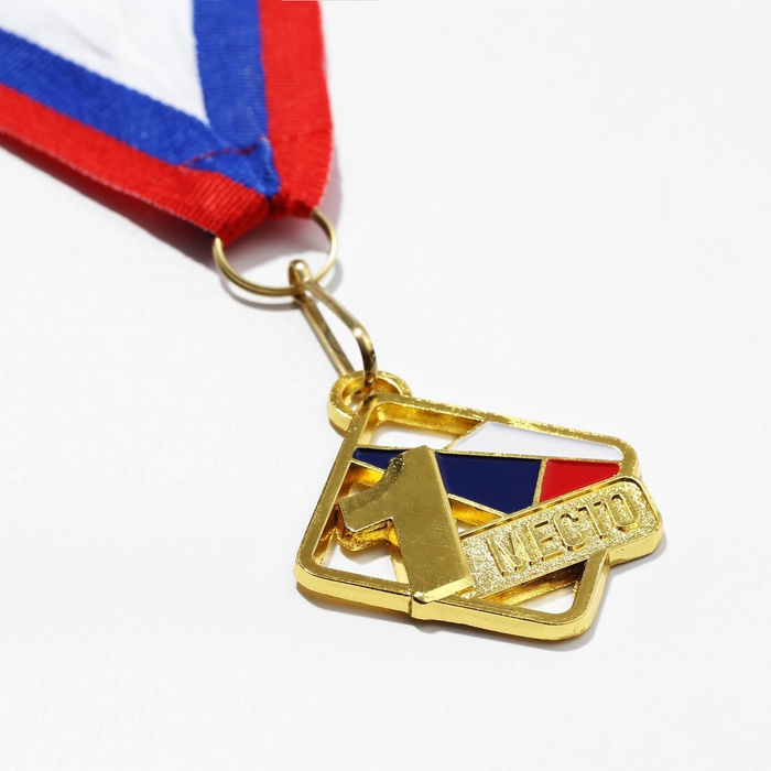Медаль призовая 013, d= 5 см. 2 место, триколор. Цвет серебро. С лентой