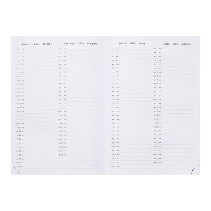 Датированный ежедневник 2024 года идеально подойдет для офисных работников и людей, занимающихся бизнесом и ценящих свое драгоценное время. Независимо от того, какие задачи вам предстоит решить, этот ежедневник будет незаменимым помощником в повседневной жизни. Стильный подарочный дизайн и красочная обложка делают этот ежедневник еще более привлекательным.