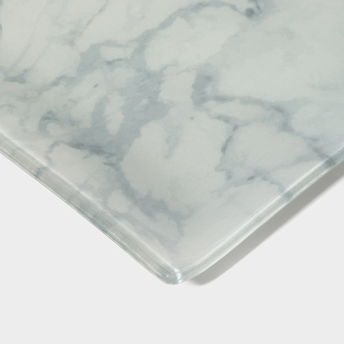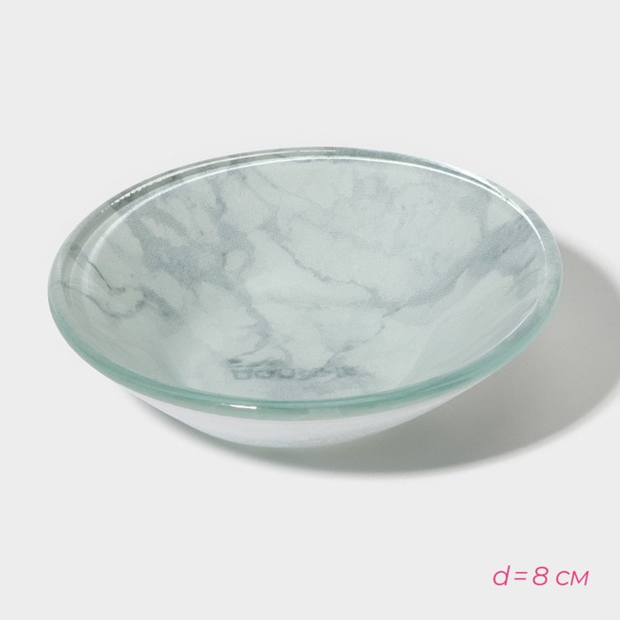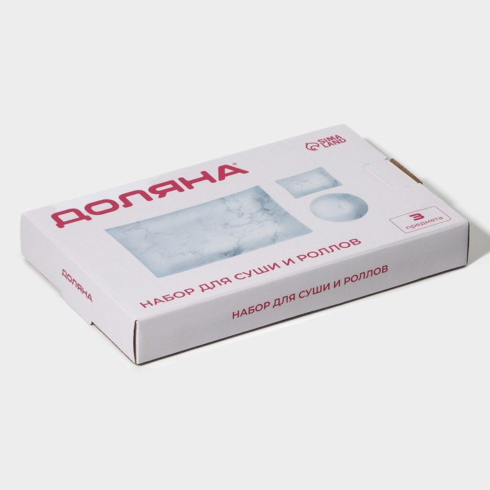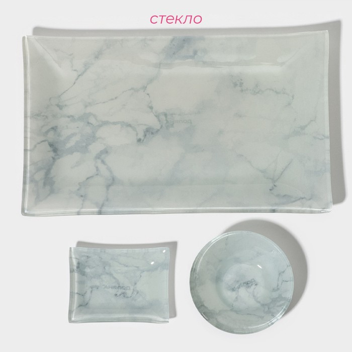 Набор для суши из стекла Доляна «Марбл белый», 3 предмета: соусники 8×2 см, 8×6 см, подставка 25×15×2 см