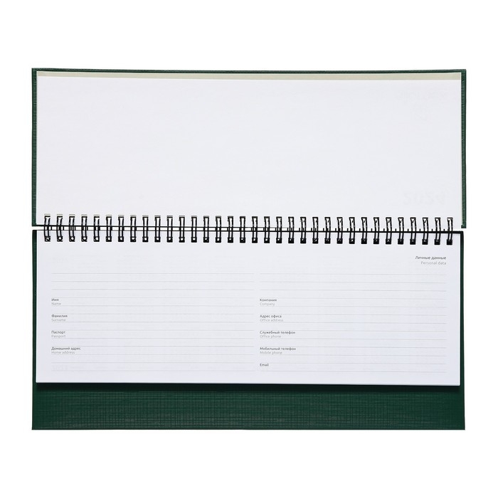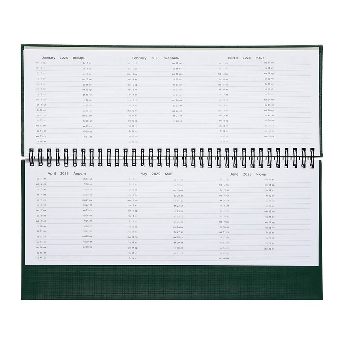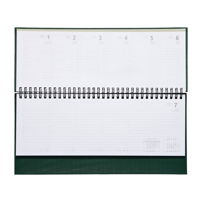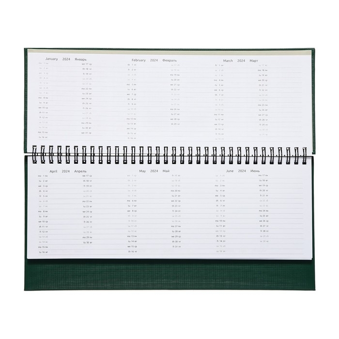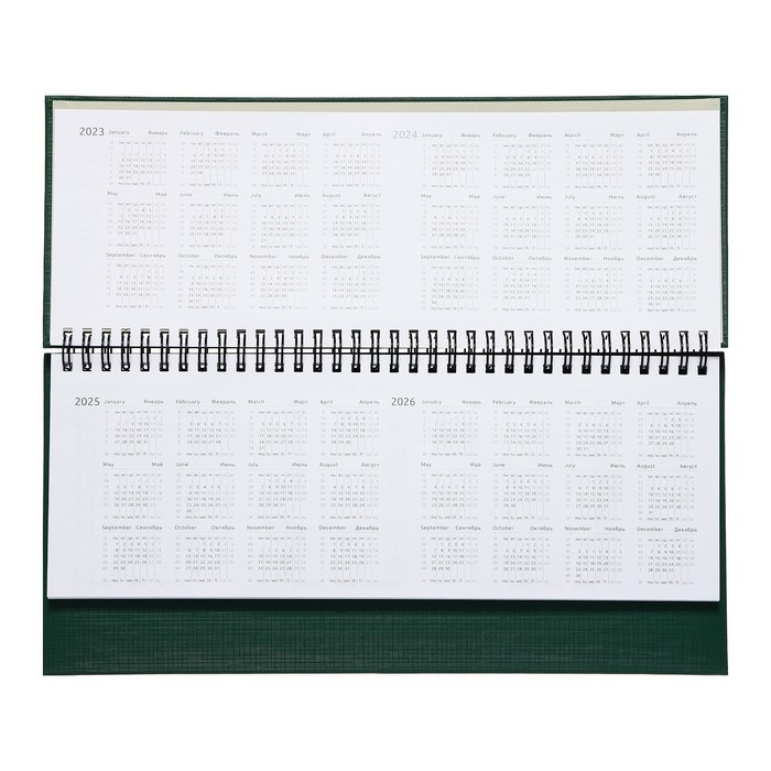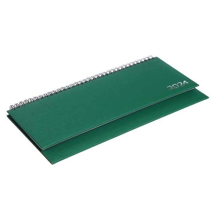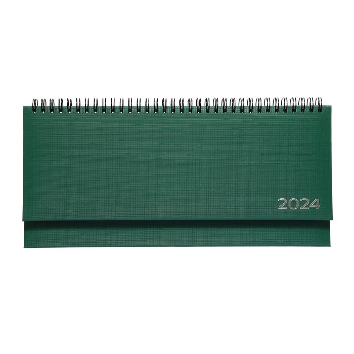 Планинг датированный 2024 года, 294 х 142 мм, 64 листа, на гребне, Attomex.Lancaster, твёрдая обложка балакрон, блок 70 г/м2, зелёный