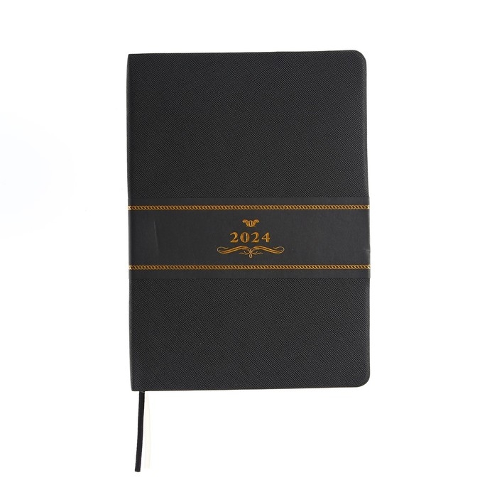 Ежедневник датированный 2024 A5 176 листов, deVENTE.Nobile, мягкая обложка из искусственной кожи, ляссе, кремовый блок 70 г/м2, чёрный