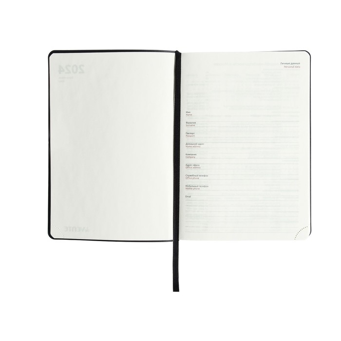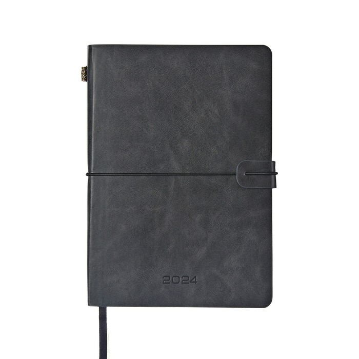 Ежедневник датированный 2024 A5 176 листов, deVENTE.Saltos, мягкая обложка из искусственной кожи, ляссе, кремовый блок 70 г/м2, чёрный