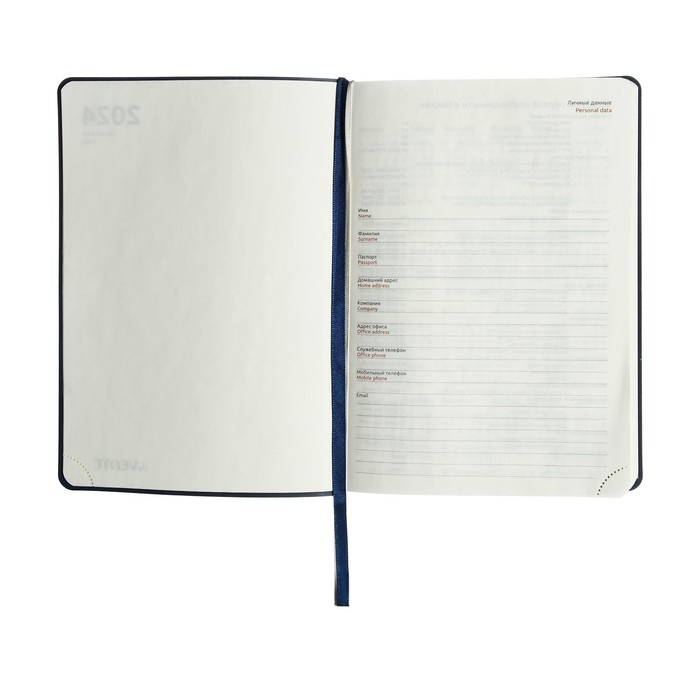 Ежедневник датированный 2024 A5 176 листов, deVENTE.Saltos, мягкая обложка из искусственной кожи, ляссе, кремовый блок 70 г/м2, синий