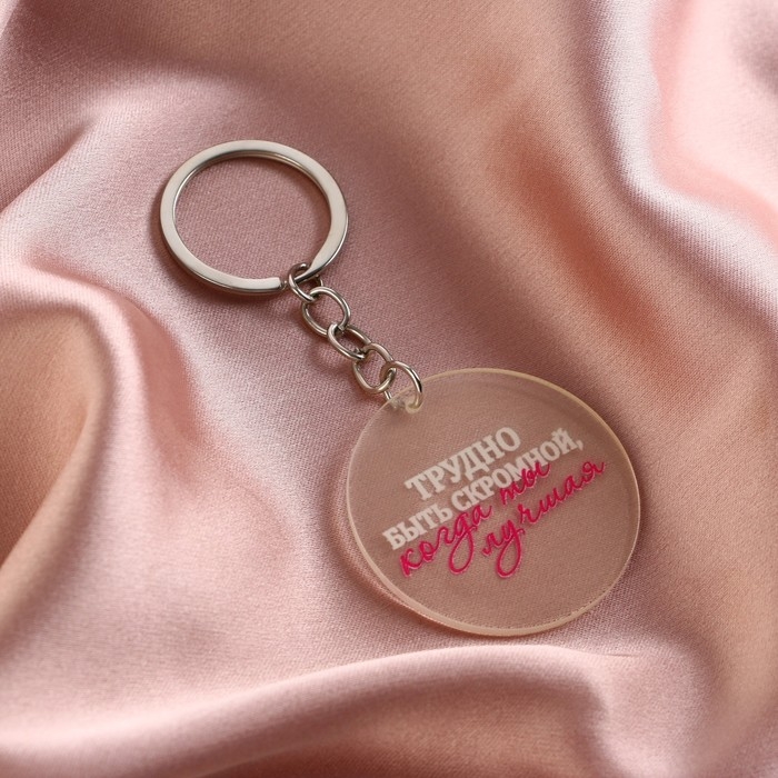 Брелок для ключей акриловый с приколом «Трудно быть скромной», диам. 4,5 см