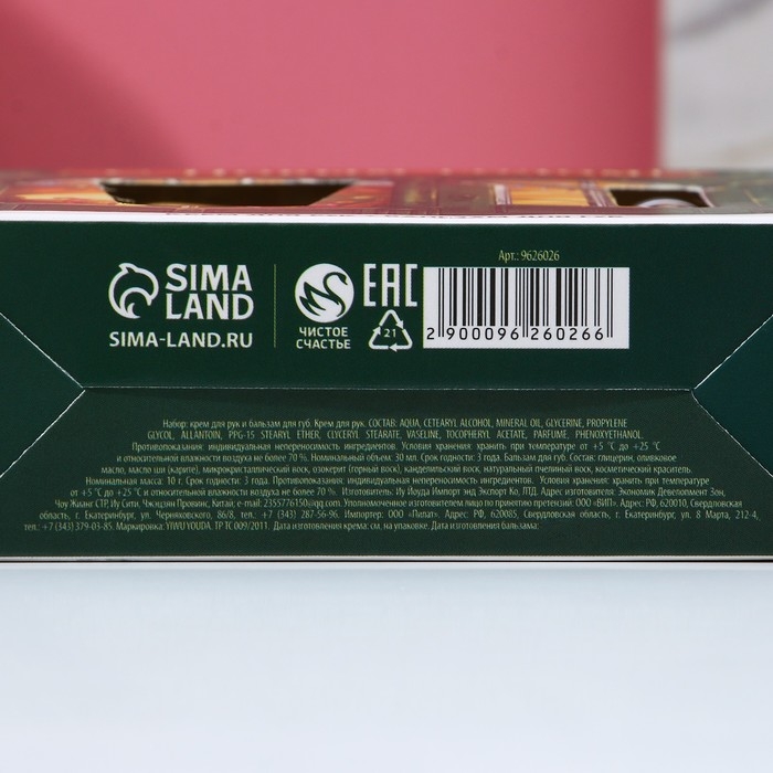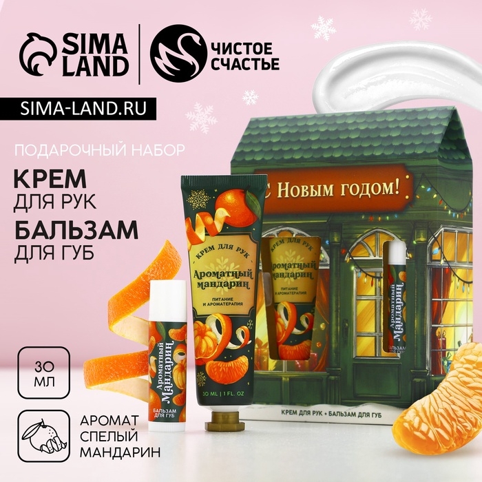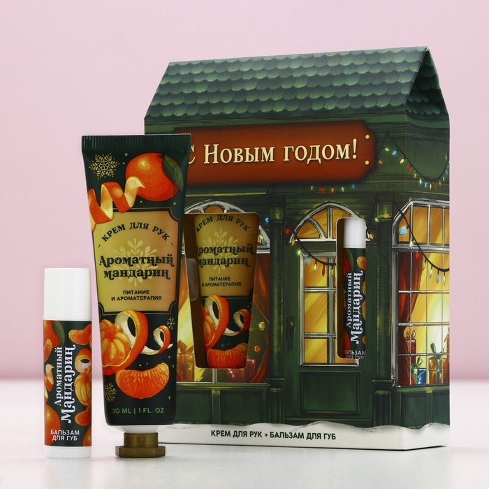 Новый Год. Подарочный набор, крем для рук 30 мл и бальзам для губ 10 г