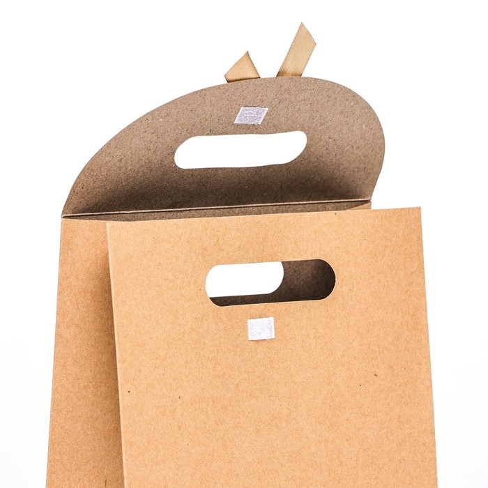 Наличие прочных ручек делает коробку-пакет легкой в переноске и придает упаковке дополнительное удобство.