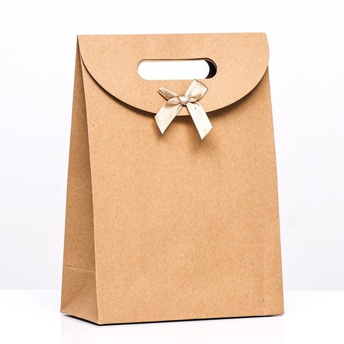 Коробка-пакет с ручкой, крафт, 26 х 19 х 9 см
