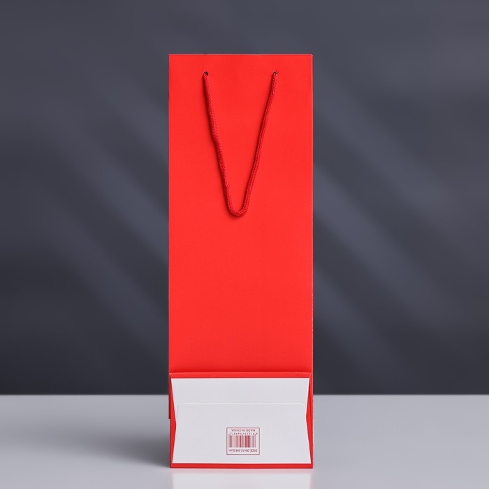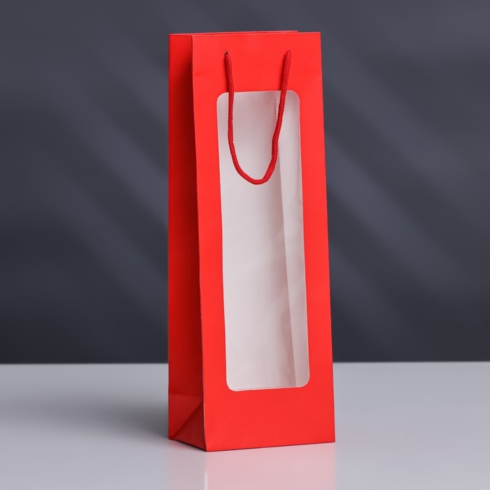 Пакет под бутылку с PVC окном 12,5 × 8,5 × 36 см, красный