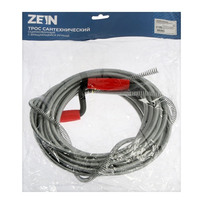 Трос сантехнический ZEIN engr, оцинкованный, с вращающейся ручкой, d=9 мм, L=10 м