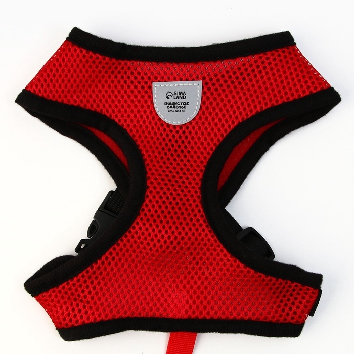 Шлейка дышащая с поводком и светоотражающей нашивкой, L, ОШ 35, ОГ 38-50, красная