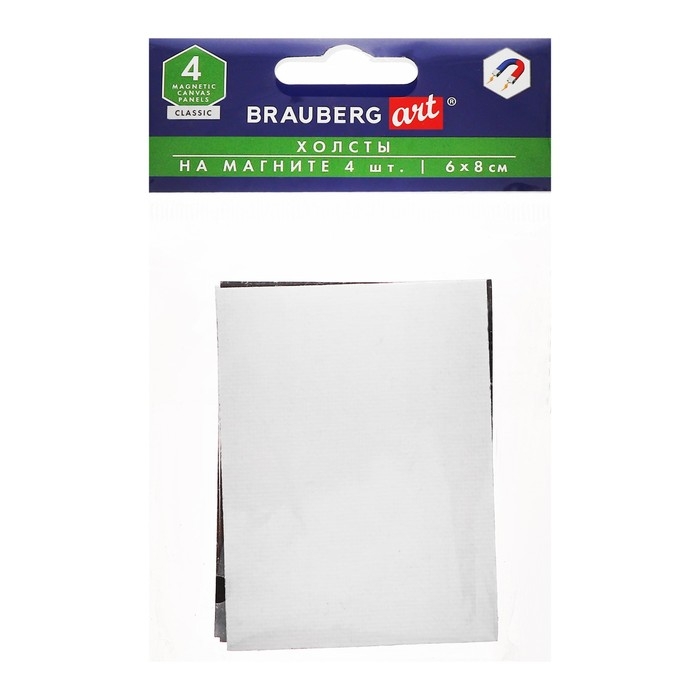 Холст на картоне с магнитои 6 х 8 см, хлопок 100%, акриловый грунт, набор 4 штуки, BRAUBERG