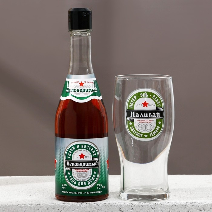 Подарочный набор мужской «Крутому мужику», гель для душа 500 мл и стакан для пива 500 мл, HARD LINE