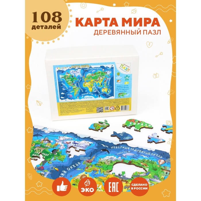 Пазл «Карта мира - материки и океаны»