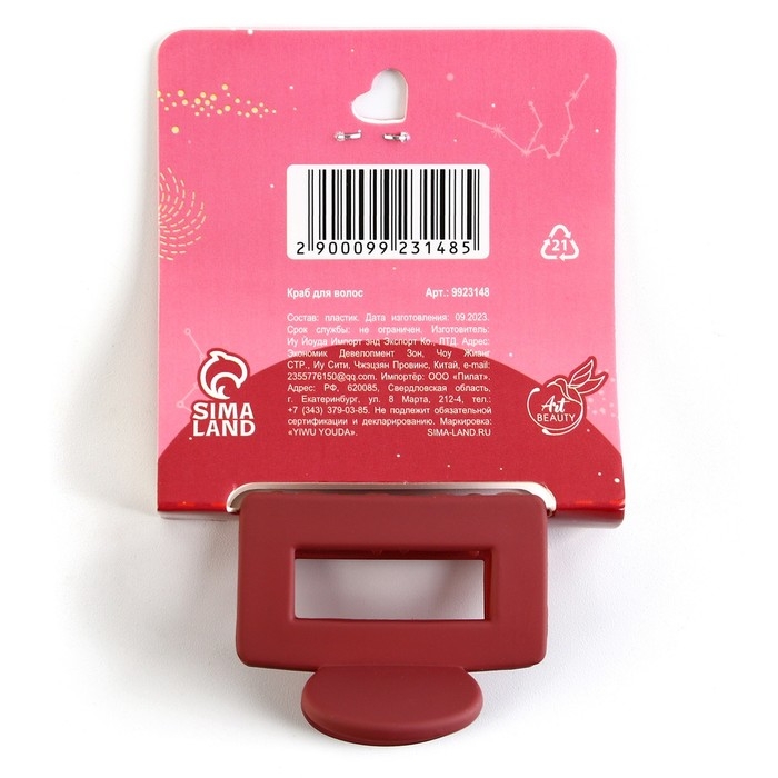 Крабик для волос отлично держит волосы, подойдет для ежедневного использования, а так же дополнит образ любого торжества. Краб для волос удобен и универсален. С его помощью можно создавать самые разные прически за короткий период времени. Краб для волос выполнен из прочного, качественного пластика, имеет стальную пружину для надежной фиксации волос. Вы можете не беспокоиться, что зубчики сломаются. Пользоваться таким аксессуаром одно удовольствие. Женский заколка-краб - незаменимая вещь. Большой крабик для волос поможет сделать прическу любой сложности, также он будет служить в качестве украшения для волос у женщин, девушек и девочки на каждый день.