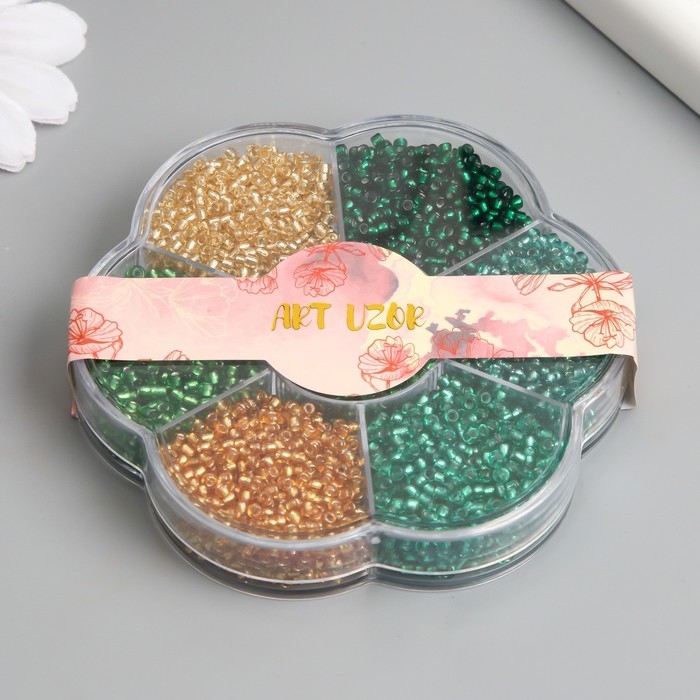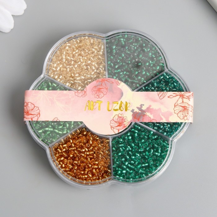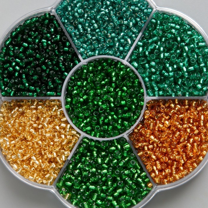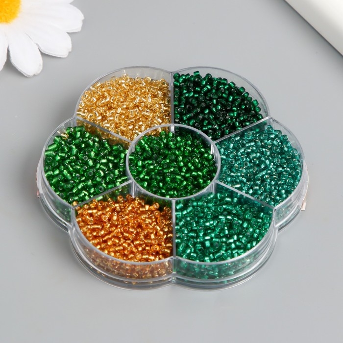 Бисер стекло 12/0 в цветке "Воздух" цветной прозрачный 7 цветов х 8 гр 8,2х8,2х2 см