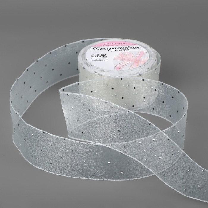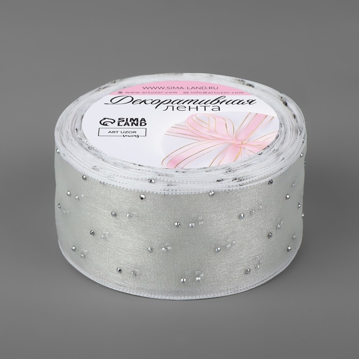 Лента капроновая, со стразами, 38 мм × 9,1 ± 0,5 м, цвет белый