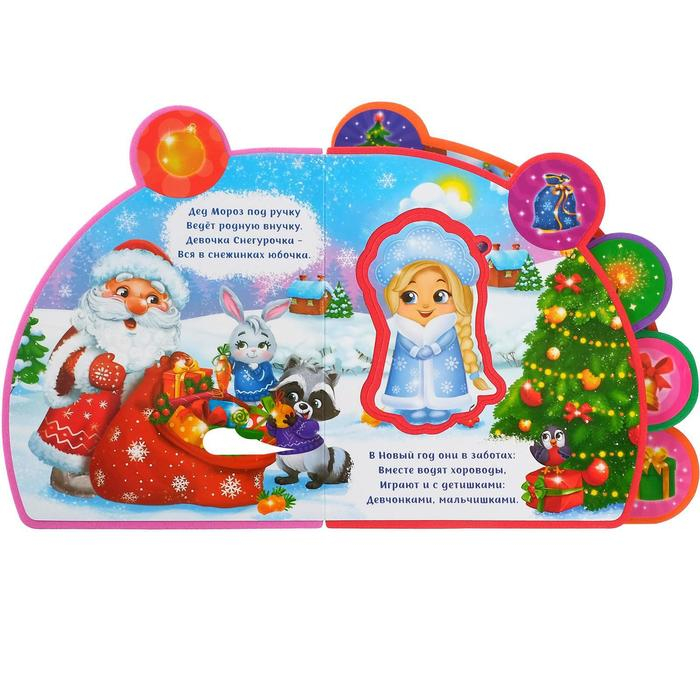 Внутри родители найдут праздничные стихи и 5 мягких пазлов-фигурок, которые можно вынимать. С деталями-вкладышами кроха потренирует моторику пальцев и будет увлечён во время чтения.