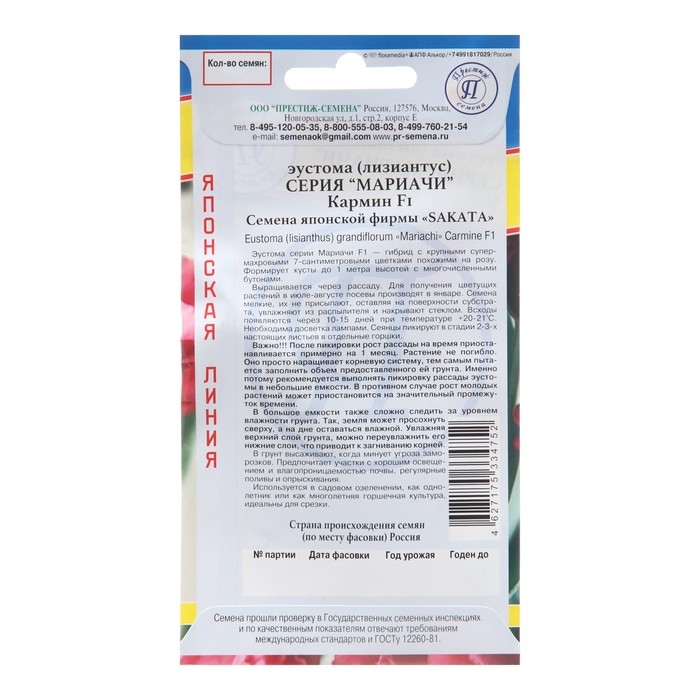 Семена цветов Эустома "Мариачи Мисти Кармин", F1, драже, 3шт