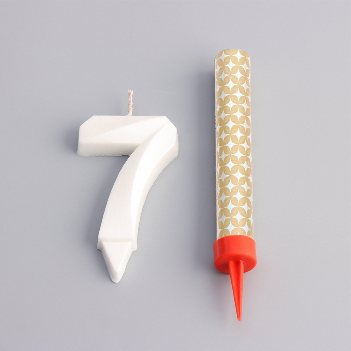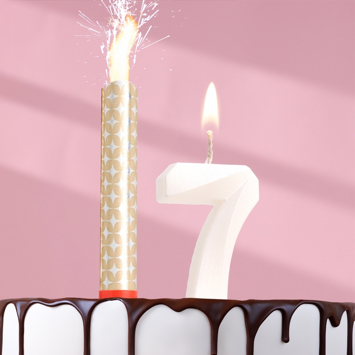 Свеча в торт "Грань + фонтан", цифра "7", жемчужный, 6,5 см
