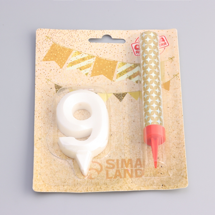 Свеча в торт "Грань + фонтан", цифра "9", жемчужный, 6,5 см